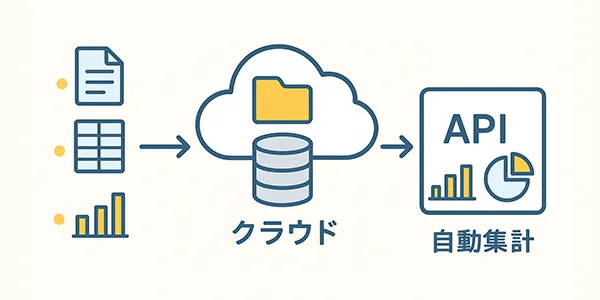 「クラウド上でデータを一元管理し、API連携により自動で集計します。」