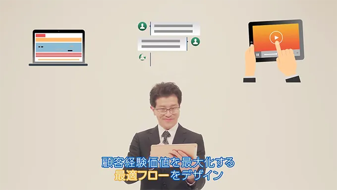 LINE公式ツールの『KANAMETO』では、営業補助動画として活用できるようにインフォグラフィックス※を多用しました。
